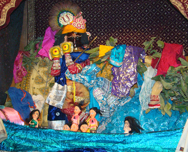 On each of these Ritual occasions various elaborate arrangements are initiated. Feasts are arranged and prepared; different sorts of decorations (Sringaar) are designed and executed, such as the personal decoration of Sriji, the decorations of the "Jagamohana" (the raised platform outside the sanctum or "Garbh graha" on which Sriji is often seated in a special throne during the festival)."Ensemble" or "Samaj" appropriate to the occasion is performed in the courtyard of the temple itself. A ritual calendar-"Almanac" or "Panchang" is prepared, fixing the year's celebrations of festival in their appropriate places during the two fortnights of each lunar month, annually according to the Science of Astronomy .Thus, the unusual events are regulated, and the devotees know all the ritual celebrations well in advance; to plan their year accordingly.