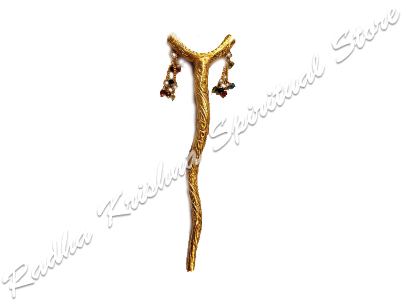 A carved german silver gold plated Lakuti of approximate 8.5 inch stem height a ideal for Lord Krishna Deities. It is engraved with intricate floral design.