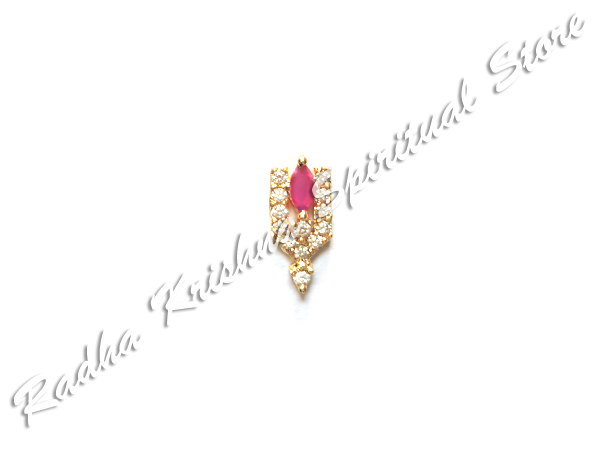 Dies ist der heilige Tilak, der auf die Stirn von Lord Sri Vishnu oder Shaligraam gelegt wird, während er ihn mit Juwelen schmückt. Goldene Basis, verziert mit amerikanischen Diamanten in rosa und weißer Farbe. Es ist von 1,1 cm.Kleine Größe: 1,1 cmMittlere Größe: 1,6 cm