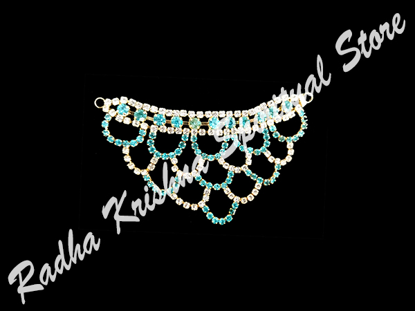 Dieser wunderschöne goldene Metallbund mit wellenförmigem und abstraktem Design ist mit künstlichen weißen und türkisfarbenen Steinen in mehreren Größen besetzt.Es ist 3 cm breit und für Gottheiten mit einer Höhe von 4 bis 6 Zoll geeignet.Verfügbare Größen:-X-Klein: - 3 cm * 2 cmKlein: - 4 cm * 2.75 cmMittel: - 5 cm * 3.25 cmGroß: - 7.5 cm * 4 cmX-Large: - 8 cm * 4 cm