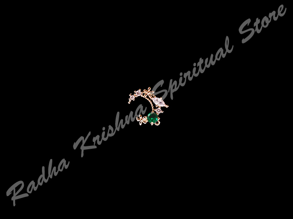 Diese wunderschönen Nath Nose Pin sind aus goldenem Metall gefertigt und mit Grün, weißen Zirkonen besetzt. Sie können mit Gottheiten von etwa 10 bis 15 Zoll Höhe geschmückt werden. Die Gesamtbreite beträgt 1.5 cm und die innere offene Breite 0.6 mm.