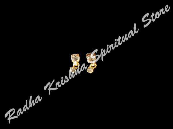 Diese ausgefallenen Steinohrringe im Dangler-Stil sind von weißer Farbe in Ohrsteckerformen, die in einer Höhe von 1 cm hängen. Es wird Shri Karn von Thakurji / Laalan / Ladoogopal und anderen Gottheiten geschmückt. Es wird im Allgemeinen als Pushtimarg Shringaar-Zubehör verwendet.