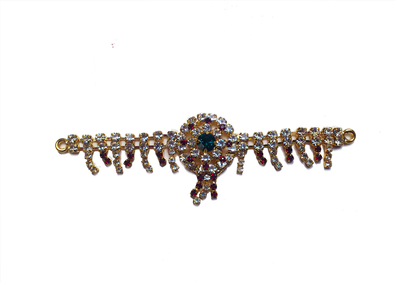Dieses schne Herzen und abstrakten Design goldenen Metal bund eingelassen ist mit Multi groen weien, roten und grnen Steinen. Es ist fr 6-Zoll-Idol passen. Bitte beachten Sie-Das Design kann leicht in kleinen Gottheit Gren variieren.