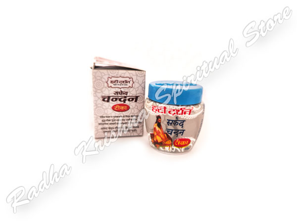 Diese 40-g-Flasche besteht aus 2 göttlichen Kräutern in Form von White Safed Chandan zusammen mit Gulab Jal in Form einer halbfesten Paste. Es ist einfach zu verwenden, da eine kleine Menge zum direkten Auftragen verwendet werden kann oder auch weiter in Wasser aufgelöst werden kann, das zum Auftragen von heiligem Tilak auf die göttliche Stirn verwendet wird. Es wird allen Gottheiten wie Lord Krishna und sogar Pancha Deva Lord Ganesha, Lord Vishnu, Lord Shiva, Devi Durga und Lord Sun angeboten. Es ist von Hari Darshan Brand.