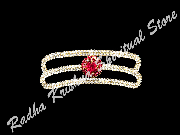 Das Deluxe heiligen Shaivite tilaka wird auf die Stirn des Gottes Vishnu, Shiva oder shivlingam während bejeweling geschmückt. Goldene Farbe Boden mit Zinnober und weiß Nachahmung Steinen verziert. Es ist fit für die Tempelgottheiten und Lingams.Es ist der kleine größen 8 cm 2.5 cm