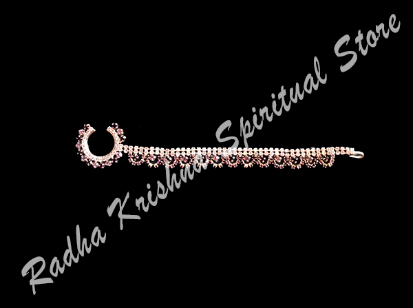 Dieser wunderschöne Nath-Nasenstift Nath mit Stern-Wellenschliff-Design aus goldenem Metall ist mit künstlichen dunkelvioletten, hellvioletten und weißen Steinen in verschiedenen Größen besetzt und hat eine Länge von 15 cm.