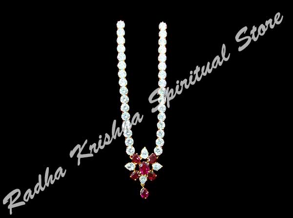 Este collar de metal dorado con diamantes Pure American está intrincadamente diseñado en motivos florales. Es de 6 a 7 pulgadas de longitud y está tachonado de blanco y rubí de color americano diamantes.
