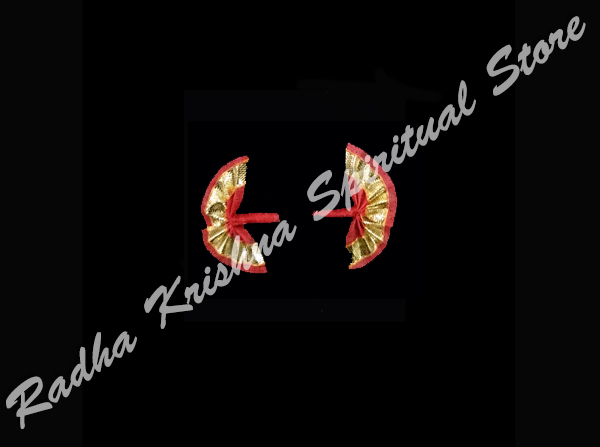 Este hermoso par de conjunto Gokarna se utiliza como Shri Mastak Shringaar. Está adornado por Thakorji / Laalan / Ladoogopal y otras deidades. Se utiliza generalmente como un accesorios Pushtimarg Shringaar. Es apropiado para un Ladoogopal de 3 a 4 pulgadas de altura.
