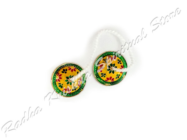 Este mini Manjira Kartal de Meenakari es ideal para todos los Dioses y Diosas. Tiene un tamaño de disco de 1.25 pulgadas de diámetro. Está realizado en metal con trabajo de color meenakari.