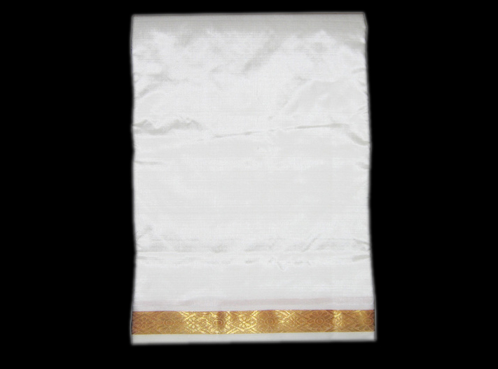 Este color blanco dhoti de seda india del sur se hace en seda pura calidad especial. El tamao de dhoti 4 metros aproximadamente. Estos son usados ÔÇïÔÇïsobre todo en ofrecer oraciones y ocasiones festivas. La frontera viene en un color propio diseo de oro que es de 20 Gulgai o 0.33 pulgadas de tamao.