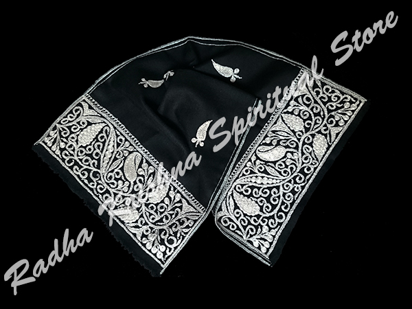 Este 21 pulgadas de largo por 10 pulgadas de ancho bellamente Jari auténtico color plata bordado semi Pashmina (Pashmina y mezcla de lana) rebozo es ideal para cualquier Divino. Estos están especialmente diseñados para los meses de invierno para mantener el Señor caliente. El color y el diseño de los bordados pueden variar debido a Kashmiri trabajo hecho a mano bordado.