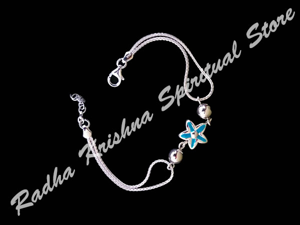 These 6 inch width pure silver with Meenakari flower and balls shape it is tied on wrist as rakhi. This is made of pure Sterling silver 92.5 percent.