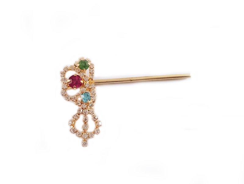 This lord Krishna flute is 2 inches long, made of metal in golden colour decorated in heart shape with multi color stones.