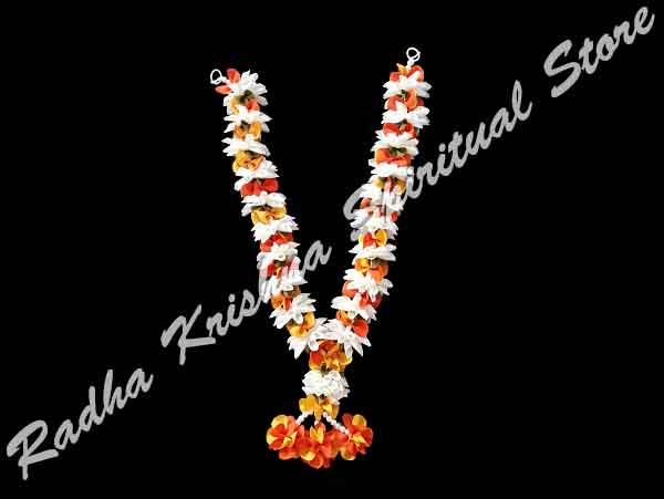 This beautiful artistic jasmine parijaat style artificial flower garland is of 13 inch total length and is of 11 inch in inner length. It is intricately handcrafted with best quality very soft cloth and pearl beads. This garland is crafted in vivid hues of White, Orange, Green and Yellow Colors.