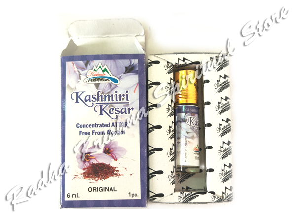 Pure Kashmiri Kesar concentrated perfume used for application to the lord in autmn, winter, spring seasons; Extracted from Kashmir saffron flower distillation in a bottle of 6 ml. Applied with help of cotton or rubbed by hands. Branded and concentrated quality perfume.