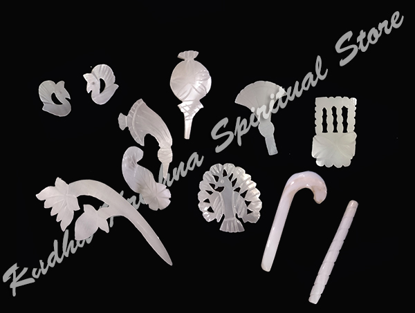 This beautiful pure shell engraved sringaar set is adorned by Thakorji / Laalan / Ladoogopal and other deities. It is generally used as a Pushtimarg Shringaar accessories. It is appropriate for a Ladoogopal of 3 to 4 inch in height.